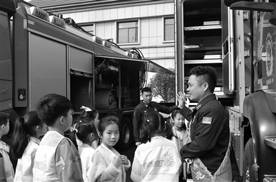 城市主战消防车、水罐消防车、抢险救援消防车、举高喷射消防车……安源区消防救援大队操场上,一辆辆高大的消防车整齐排列于操场两侧,让参观者大开眼界、惊叹不已。从高压水枪到云梯、从灭火器到救援绳索,皮文侠深入浅出地为大家逐一介绍各类消防车的用途、讲解每一件消防器械的用途及使用方法,并现场演示消防装备的操作流程。