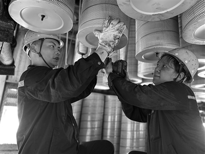 在安源炼铁厂高炉平台,炉前工身穿厚实的阻燃服,头戴安全帽、手戴棉手套,直面1500℃铁水的热浪,及时清理渣铁,确保出铁正常;安源轧钢厂的生产线上,刚从加热炉出来的红坯接近1000℃,散发着灼人的热气,工人守在轧机旁,一丝不苟地进行料型测量,筑牢产品质量防线;动力厂4号鼓风站里,两名维修员工抢抓生产间隙,在厂房内更换空气滤芯……萍安钢铁的工人们以汗水诠释责任,用坚守保障生产,在热浪中书写劳动者的光荣与担当,为钢铁生产注入澎湃力量。