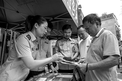近日,江西省药监局行政受理与投诉举报中心与市市监局联合开展以“药品安全 监管为民”为主题的2025年“药品安全宣传周”系列活动,宣传药品安全知识,科普适老化药品说明书的使用方法以及开展过期药品回收活动。图为工作人员向社区居民宣传药品安全知识。