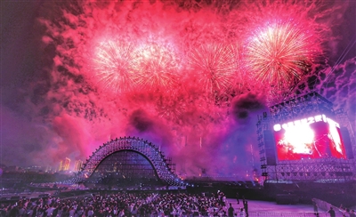 9月26日至28日,第三届上栗花炮文化节暨2025江西(上栗)烟花爆竹产销交易会举行,来自国内外的游客、客商齐聚上栗,共同见证这场传统与现代交织、文化与产业共舞的盛会。图为开幕式烟花秀。 (全媒体记者 吴伟 摄)